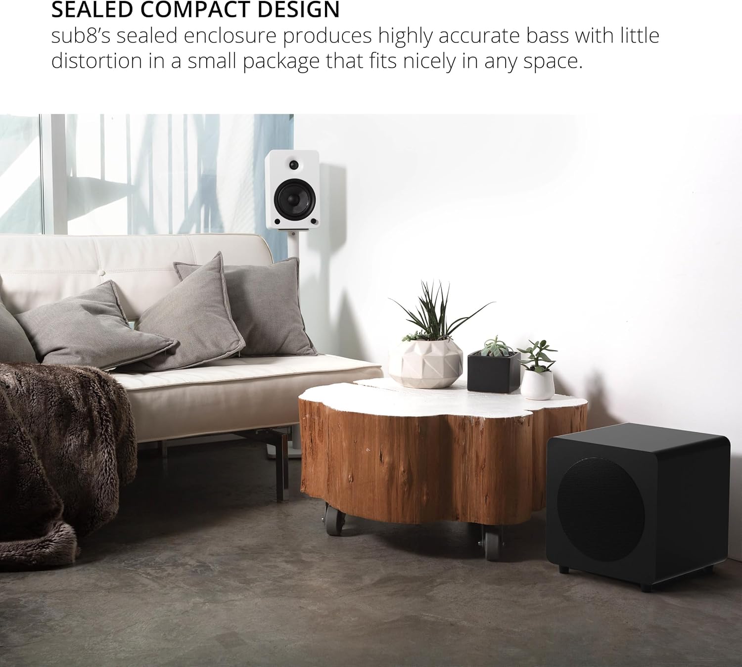 Speed and Accuracy: Sealed subwoofers react to changes in audio more quickly than vented designs. Every bass note is reproduced accurately with little distortion allowing you to hear pure audio and not the subwoofers influence on the sound | 8 Inch Woofer: Sub8's sealed box design provides detailed bass response while ensuring your favorite songs and soundtracks are perfectly balanced