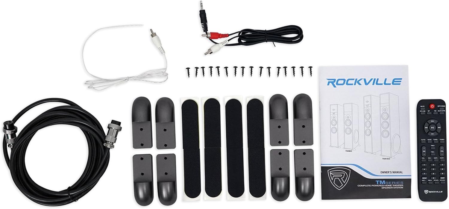 KARAOKE READY - Includes two 1/4-inch mic inputs with adjustable volume and echo controls for the ultimate home karaoke speaker system experience "- Rockville TM80C Complete Powered Home Theater Tower Speaker System With Dual 8"" Subs