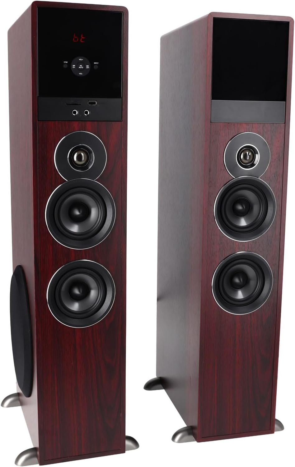 Rockville TM80C Home Theater System Tower Speakers with 8"" Subwoofer and Bluetooth in Cherry Wood